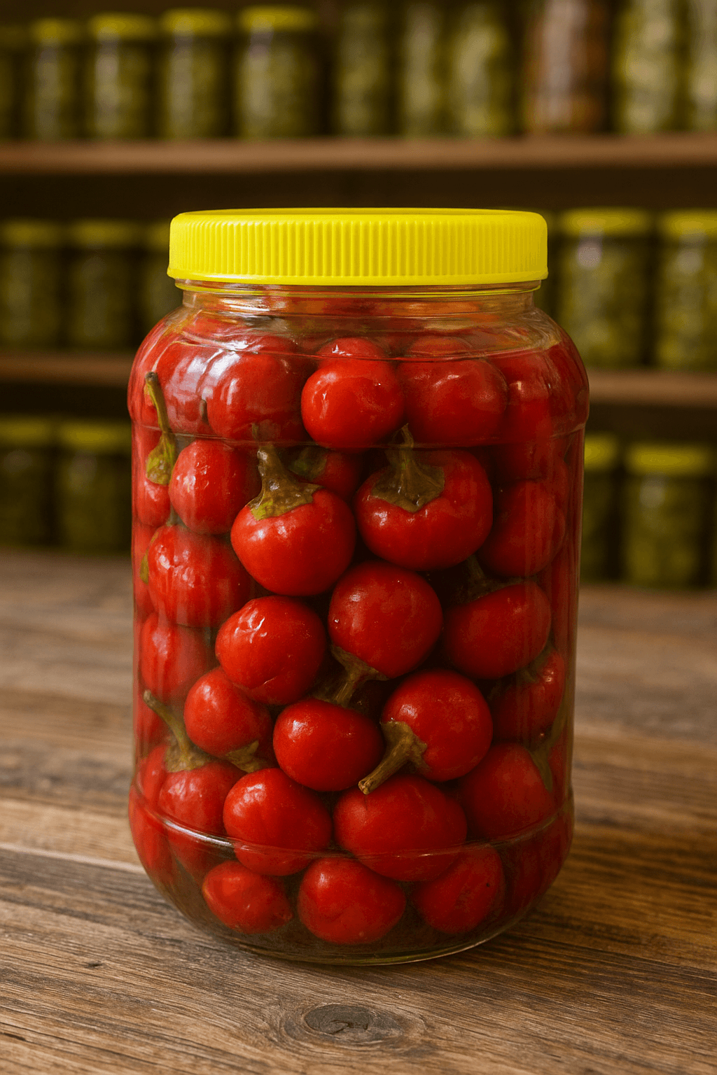 Doğal fermente yöntemle hazırlanmış, diri ve lezzetli Taşköprü kiraz biberi turşusu. Sofranıza el yapımı lezzet katın!